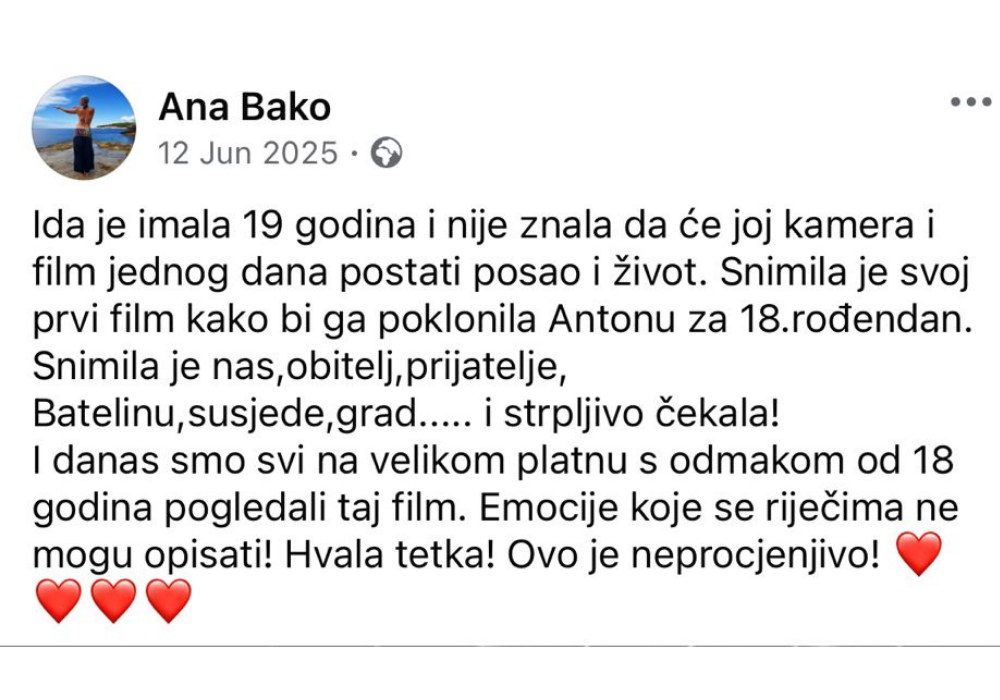 Svoj prvi dokumentarac nisam snimila ni za posao ili klijenta, nego za svoju obitelj.